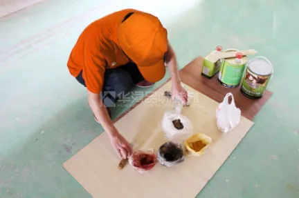 A.根据饰面板基色用清油色粉等调配颜色,不要用水调,但要注意的是线条与面板颜色有误差,应分别调色。B.为确保钉眼灰与木饰品颜色尽量接近,应在自然光下调色,并反复对比,釘眼灰须吸透油漆后才能最终定色。C.补钉眼应用小灰刀补,不能直接用手指去补,否则钉眼缝隙补不实,易内凹,影响美观。